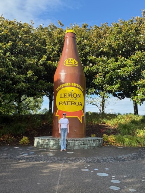 L&P Soft Drink is world famous in New Zealand. Originating from Paeroa in New Zealand, this lemony soft drink is now made in Auckland. You can still visit the Big L&P bottle in Paeroa.